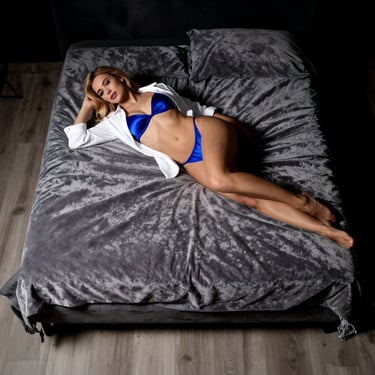 Sample ideas of possible clothing and poses. The lighting would be closer to the last ones (bed shots) with a more shadowy background.
