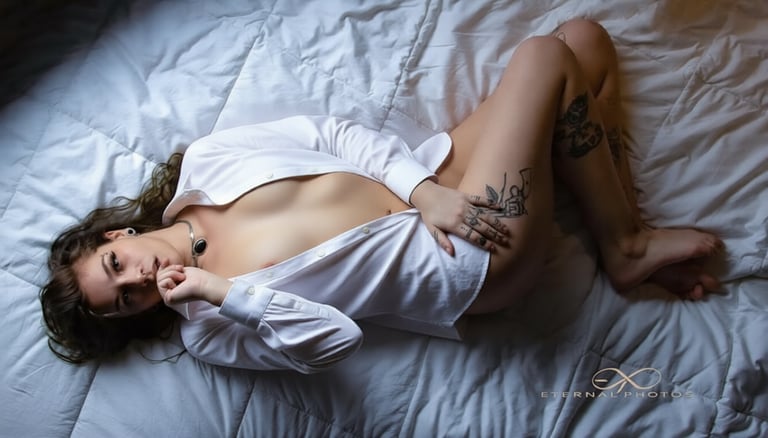If a client is looking to share the photos with a partner, the option of wearing their partner's clothes is certainly a good choice. Many men love seeing their ladies in their favorite dress shirt for instance. With an open front, either showing the lingerie or hints of skin, this makes for great shots.